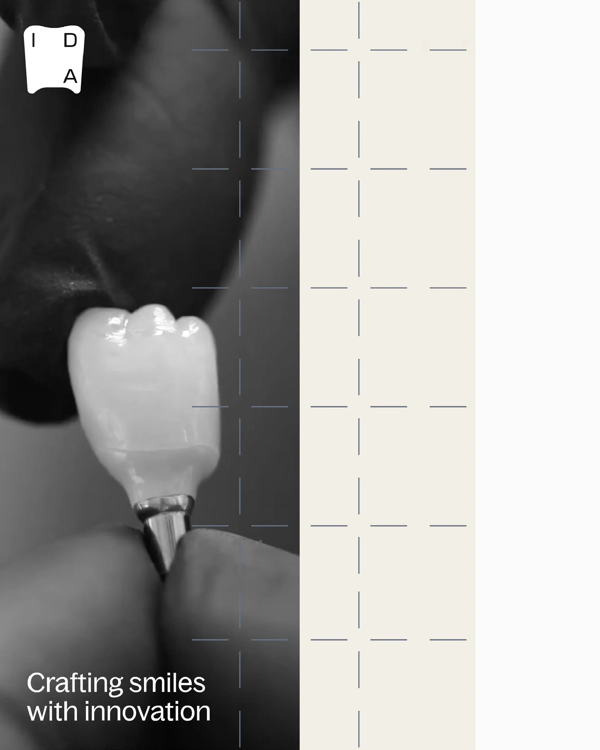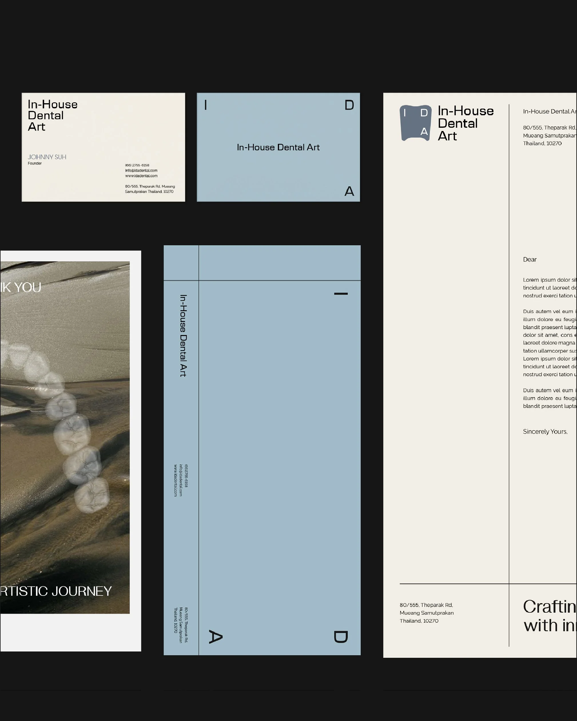 IDA (In-House Dental Art) is an in-house dental lab with over 20 years of experience, trusted by dentists for its complete materials, professional tools, and high-quality team. The design approach emphasizes a premium, calming feel—using clean, simple warm-toned palettes and incorporating artistic drafting-style visuals to reinforce the brand value of being “The Best,” delivering work that is both highly functional and beautifully crafted.